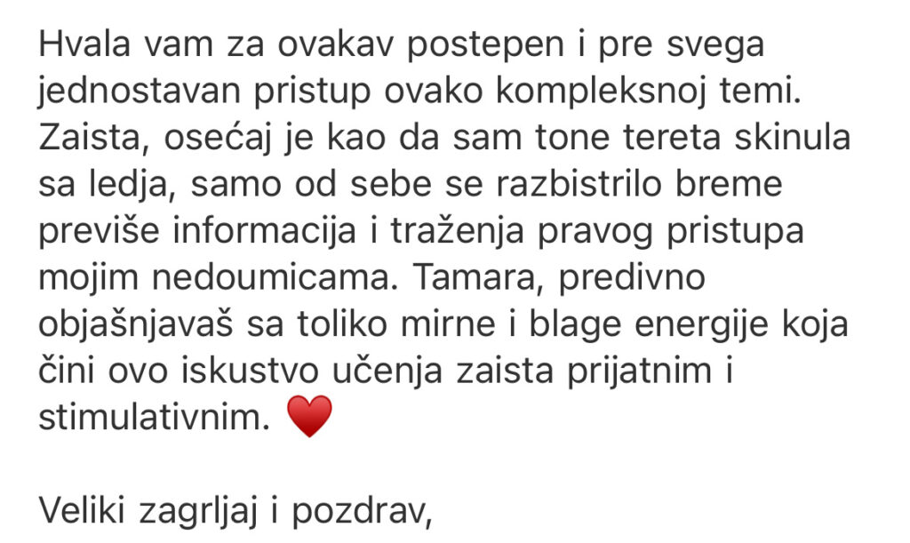 Radionica je mesto gde možeš otvoreno istraživati svoje izazove i postavljati pitanja. Imaćeš podršku trenera i ostalih učesnica, a svaki primer i diskusija je prilika da razjasniš svoje dileme i dobiješ praktične smernice kako da primeniš naučeno.